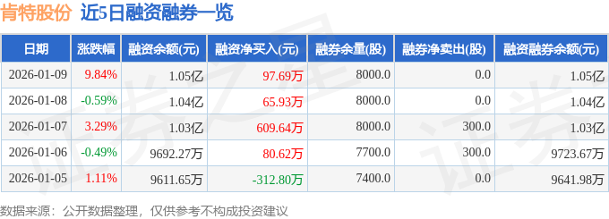 证券之星消息,截至2026年1月9日收盘,肯特股份(301591)报收于46.0元,上涨9.84%,换手率21.24%,成交量7.21万手,成交额3.23亿元。
