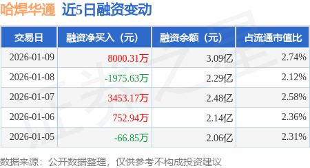 证券之星消息,1月9日,哈焊华通(301137)融资买入2.49亿元,融资偿还1.69亿元,融资净买入8000.31万元,融资余额3.09亿元,近20个交易日中有11个交易日出现融资净买入。