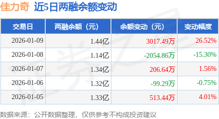 证券之星消息,1月9日,佳力奇(301586)融资买入6556.64万元,融资偿还3540.16万元,融资净买入3016.48万元,融资余额1.44亿元,近20个交易日中有12个交易日出现融资净买入。