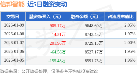 证券之星消息,1月9日,信邦智能(301112)融资买入2861.35万元,融资偿还1956.19万元,融资净买入905.17万元,融资余额9648.6万元,近3个交易日已连续净买入累计1121.43万元,近20个交易日中有12个交易日出现融资净买入。