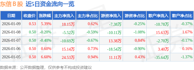 1月9日的资金流向数据方面,主力资金净流入18.15万元,占总成交额0.62%,游资资金净流出7.38万元,占总成交额0.25%,散户资金净流出10.78万元,占总成交额0.37%。