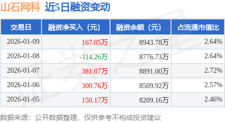 证券之星消息,1月9日,山石网科(688030)融资买入1334.92万元,融资偿还1167.87万元,融资净买入167.05万元,融资余额8943.78万元,近20个交易日中有12个交易日出现融资净买入。