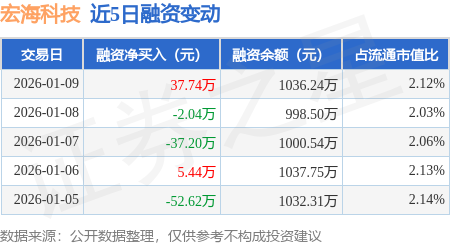 证券之星消息,1月9日,宏海科技(920108)融资买入87.0万元,融资偿还49.26万元,融资净买入37.74万元,融资余额1036.24万元。