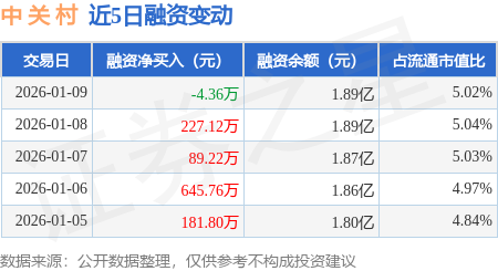证券之星消息,1月9日,中 关 村(000931)融资买入617.85万元,融资偿还622.2万元,融资净卖出4.36万元,融资余额1.89亿元,近20个交易日中有13个交易日出现融资净买入。