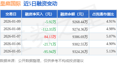 证券之星消息,1月9日,皇庭国际(000056)融资买入96.81万元,融资偿还102.73万元,融资净卖出5.92万元,融资余额9268.44万元。