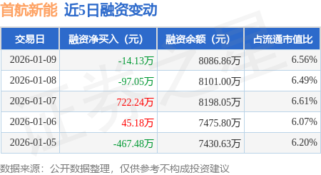 证券之星消息,1月9日,首航新能(301658)融资买入1142.45万元,融资偿还1156.58万元,融资净卖出14.13万元,融资余额8086.86万元。