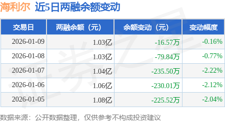 证券之星消息,1月9日,海利尔(603639)融资买入610.39万元,融资偿还626.76万元,融资净卖出16.38万元,融资余额1.02亿元。