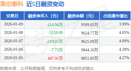 证券之星消息,1月9日,莱伯泰科(688056)融资买入214.51万元,融资偿还329.45万元,融资净卖出114.94万元,融资余额9509.83万元。