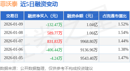 证券之星消息,1月9日,菲沃泰(688371)融资买入957.87万元,融资偿还1090.34万元,融资净卖出132.47万元,融资余额1.04亿元。