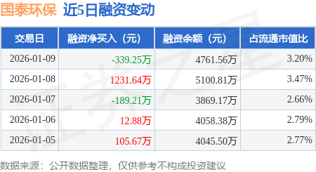 证券之星消息,1月9日,国泰环保(301203)融资买入259.59万元,融资偿还598.83万元,融资净卖出339.25万元,融资余额4761.56万元。