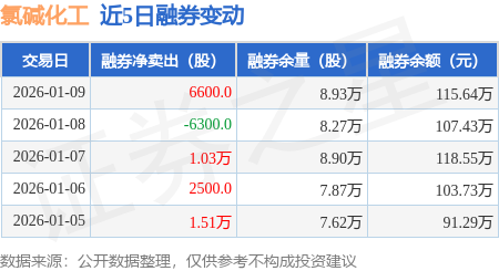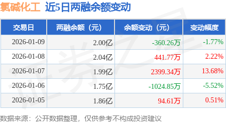 证券之星消息,1月9日,氯碱化工(600618)融资买入2207.52万元,融资偿还2575.99万元,融资净卖出368.47万元,融资余额1.99亿元。