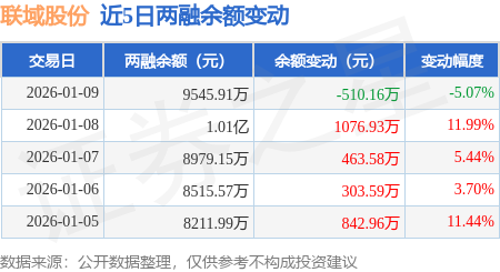 证券之星消息,1月9日,联域股份(001326)融资买入1113.8万元,融资偿还1623.96万元,融资净卖出510.16万元,融资余额9545.91万元,近20个交易日中有13个交易日出现融资净买入。