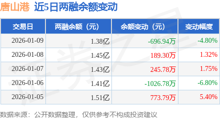 证券之星消息,1月9日,唐山港(601000)融资买入432.5万元,融资偿还1143.25万元,融资净卖出710.74万元,融资余额1.33亿元。