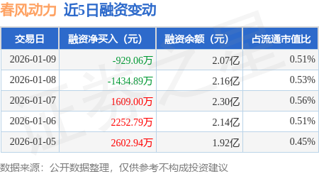 证券之星消息,1月9日,春风动力(603129)融资买入2324.77万元,融资偿还3253.82万元,融资净卖出929.06万元,融资余额2.07亿元。