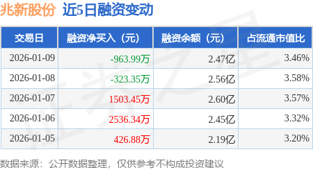 证券之星消息,1月9日,兆新股份(002256)融资买入1388.88万元,融资偿还2352.87万元,融资净卖出963.99万元,融资余额2.47亿元。