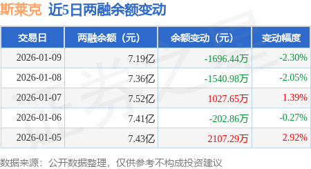 证券之星消息,1月9日,斯莱克(300382)融资买入4692.21万元,融资偿还6388.74万元,融资净卖出1696.53万元,融资余额7.19亿元,近20个交易日中有12个交易日出现融资净买入。