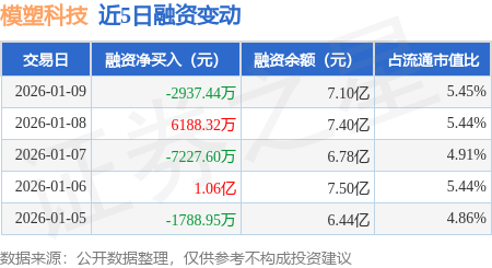 证券之星消息,1月9日,模塑科技(000700)融资买入2.4亿元,融资偿还2.69亿元,融资净卖出2937.44万元,融资余额7.1亿元,近20个交易日中有11个交易日出现融资净买入。
