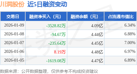 证券之星消息,1月9日,川润股份(002272)融资买入7834.82万元,融资偿还1.14亿元,融资净卖出3528.82万元,融资余额4.09亿元。