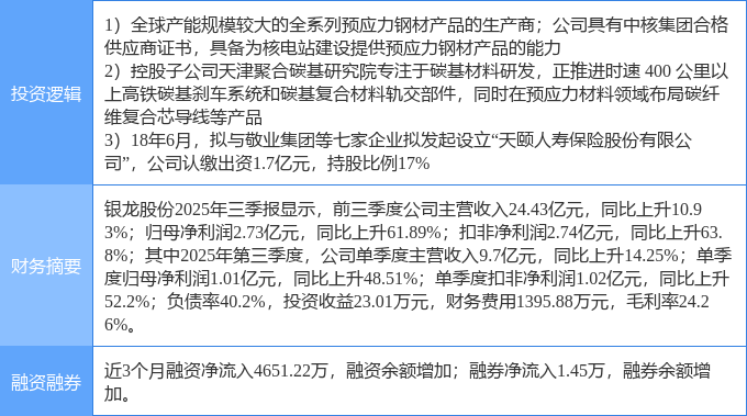 该股为碳基材料,参股保险,核电概念热股,当日碳基材料概念上涨3.26%,参股保险概念上涨3.25%,核电概念上涨2.73%。