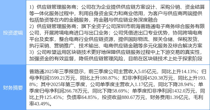 该股为区块链,供应链金融,跨境电商概念热股,当日区块链概念上涨5.94%,供应链金融概念上涨3.68%,跨境电商概念上涨3.37%。