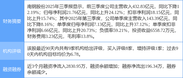 2025年10月27日,民生证券研究员邱祖学,范钧发布了对南钢股份的研报《2025年三季报点评:高端产品发力,扣非利润创新高》,该研报对南钢股份给出“买入”评级。研报中预计2025-2027年公司归母净利润依次为28.26/30.92/34.52亿元,对应10月24日收盘价,PE为11x、10x和9x,维持“推荐”评级。证券之星数据中心根据近三年发布的研报数据计算,该研报作者对此股的盈利预测准确度为40.52%。