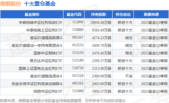重仓南钢股份的前十大公募基金请见下表: