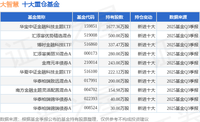 重仓大智慧的前十大公募基金请见下表: