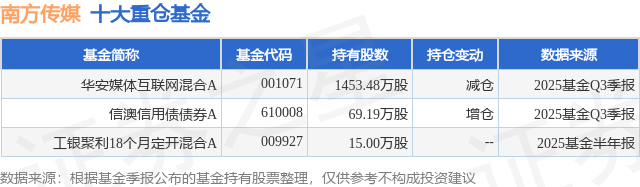 重仓南方传媒的公募基金请见下表: