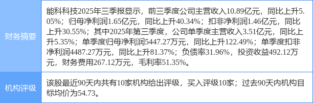 2025年11月2日,民生证券研究员吕伟,白青瑞发布了对能科科技的研报《2025年三季报点评:战略聚焦提升盈利能力,前瞻布局灯塔工厂》,该研报对能科科技给出“买入”评级。研报中预测公司2025-2027年收入分别为17.25、19.87、23.21亿元;EPS分别为0.93、1.10、1.33元,2025年10月31日收盘价对应PE分别为50X、42X、35X,维持“推荐“评级。证券之星数据中心根据近三年发布的研报数据计算,该研报作者对此股的盈利预测准确度为64.03%。