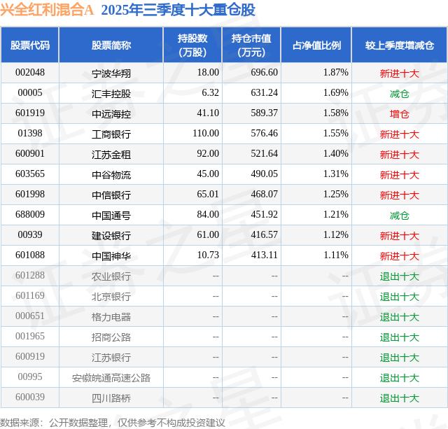 根据2025基金Q3季报公募基金重仓股数据,重仓该股的公募基金共8家,其中持有数量最多的公募基金为兴证全球基金的兴全红利混合A。兴全红利混合A目前规模为1.36亿元,最新净值1.1527(1月9日),较上一交易日上涨0.21%,近一年上涨18.71%。该公募基金现任基金经理为张晓峰。张晓峰在任的基金产品包括:兴全中证800六个月持有指数A,管理时间为2021年5月24日至今,期间收益率为33.12%;