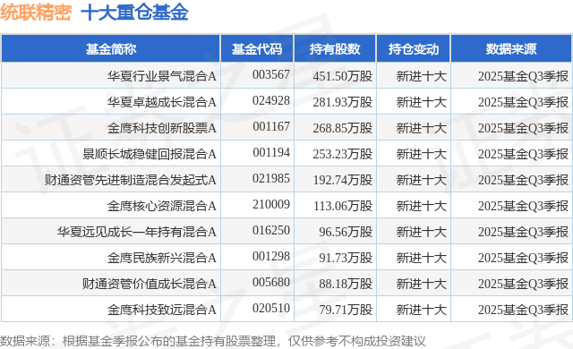 根据2025基金Q3季报公募基金重仓股数据,重仓该股的公募基金共38家,其中持有数量最多的公募基金为华夏基金的华夏行业景气混合A。华夏行业景气混合A目前规模为89.72亿元,最新净值5.1594(1月9日),较上一交易日上涨1.09%,近一年上涨71.54%。该公募基金现任基金经理为钟帅。钟帅在任的基金产品包括:华夏远见成长一年持有混合A,管理时间为2022年9月20日至今,期间收益率为39.4%;华夏招鑫鸿瑞混合A,管理时间为2024年1月16日至今,期间收益率为120.99%;华夏卓越成长混合A,管理时间为2025年8月12日至今,期间收益率为19.6%。