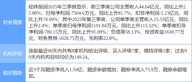 2025年10月29日,民生证券研究员崔琰,完颜尚文发布了对经纬恒润的研报《系列点评六:25Q3营收稳健RoboX全面推进》,该研报对经纬恒润给出“买入”评级。研报中预计公司2025-2027年营收分别为73.24/90.43/107.48亿元,归母净利润分别为0.52/3.90/6.14亿元,EPS分别为0.43/3.26/5.12元,对应2025年10月29日106.51元/股收盘价,2025-2027年PE分别为245/33/21倍,维持“推荐”评级。证券之星数据中心根据近三年发布的研报数据计算,该研报作者对此股的盈利预测准确度为52.64%。