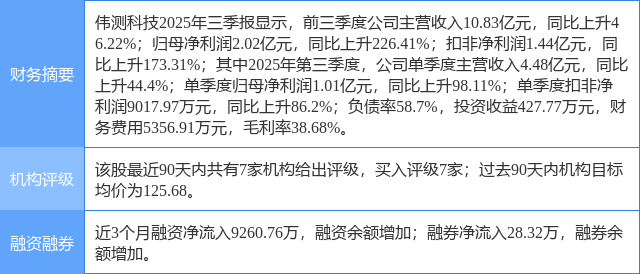 今日伟测科技(688372)涨6.02%,收盘报124.25元。