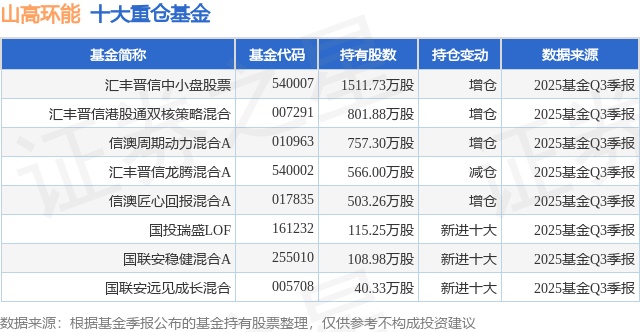 根据2025基金Q3季报公募基金重仓股数据,重仓该股的公募基金共8家,其中持有数量最多的公募基金为汇丰晋信基金的汇丰晋信中小盘股票。汇丰晋信中小盘股票目前规模为14.93亿元,最新净值3.7924(1月9日),较上一交易日下跌0.06%,近一年上涨62.01%。该公募基金现任基金经理为郑小兵。郑小兵在任的基金产品包括:汇丰晋信港股通双核策略混合,管理时间为2024年9月14日至今,期间收益率为86.23%。