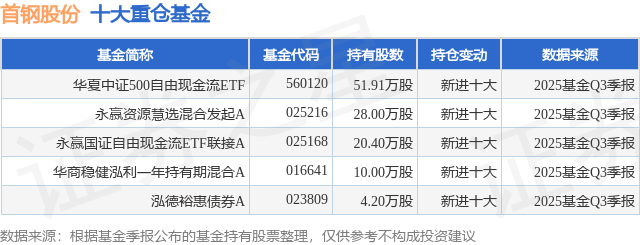重仓首钢股份的公募基金请见下表:
