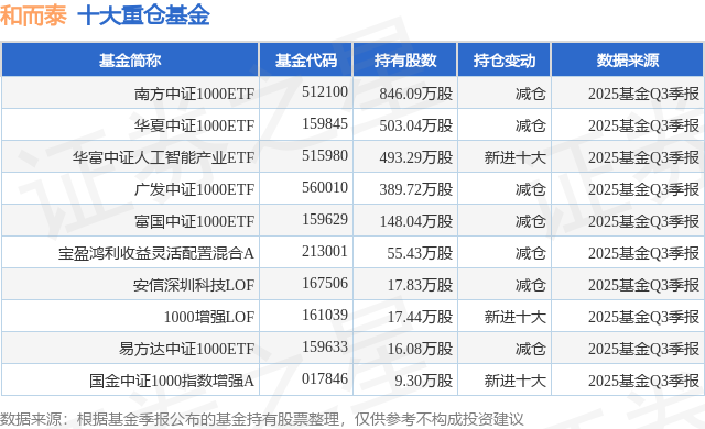 重仓和而泰的前十大公募基金请见下表: