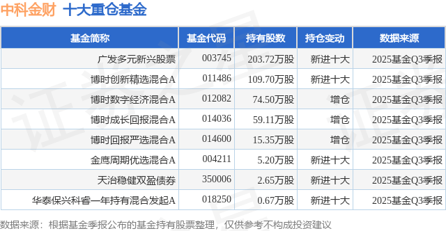 重仓中科金财的公募基金请见下表:
