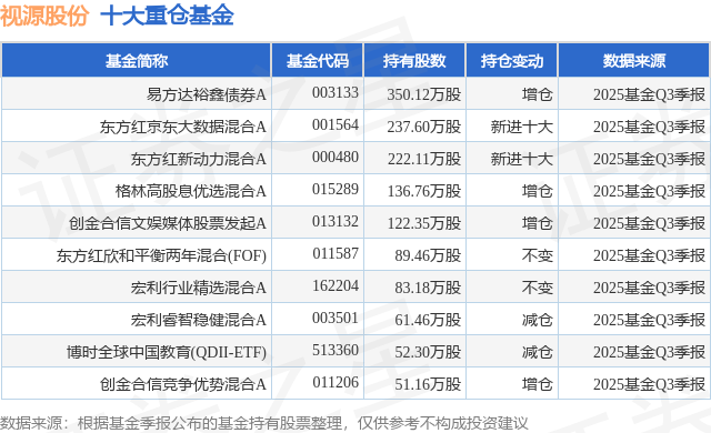 根据2025基金Q3季报公募基金重仓股数据,重仓该股的公募基金共16家,其中持有数量最多的公募基金为易方达基金的易方达裕鑫债券A。易方达裕鑫债券A目前规模为48.99亿元,最新净值1.8046(1月9日),较上一交易日上涨0.7%,近一年上涨21.82%。该公募基金现任基金经理为胡文伯。胡文伯在任的基金产品包括:易方达鑫转招利混合A,管理时间为2023年3月16日至今,期间收益率为29.86%;易方达磐固六个月持有期混合A,管理时间为2023年6月21日至今,期间收益率为7.09%。