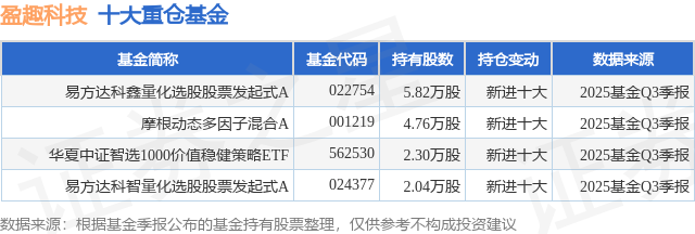 重仓盈趣科技的公募基金请见下表: