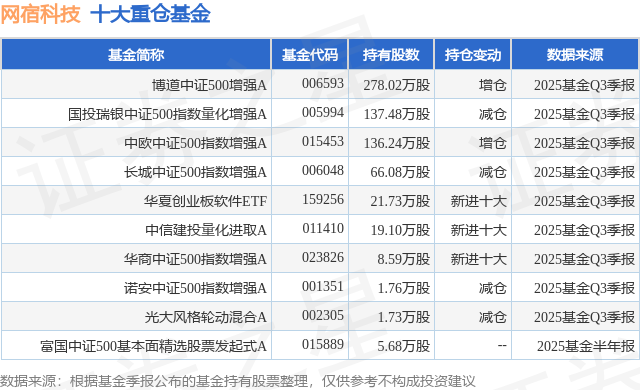 重仓网宿科技的前十大公募基金请见下表: