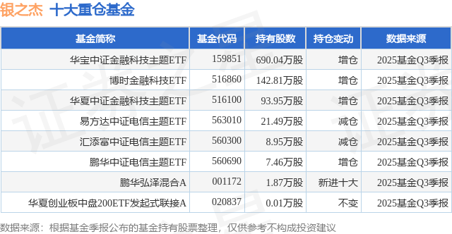 根据2025基金Q3季报公募基金重仓股数据,重仓该股的公募基金共8家,其中持有数量最多的公募基金为华宝基金的华宝中证金融科技主题ETF。华宝中证金融科技主题ETF目前规模为123.19亿元,最新净值0.8877(1月9日),较上一交易日上涨2.41%,近一年上涨36.37%。该公募基金现任基金经理为陈建华 曹旭辰。陈建华在任的基金产品包括:华宝中证A100ETF联接A,管理时间为2012年12月22日至今,期间收益率为185.99%;华宝化工ETF,管理时间为2021年2月26日至今,期间收益率为-9.45%;华宝有色金属ETF,管理时间为2021年3月12日至今,期间收益率为116.26%。曹旭辰在任的基金产品包括:华宝国证通用航空产业ETF,管理时间为2025年5月22日至今,期间收益率为41.11%;华宝创业板人工智能ETF,管理时间为2025年5月22日至今,期间收益率为125.37%;华宝中证港股通互联网ETF,管理时间为2025年5月22日至今,期间收益率为2.86%;华宝中证电子50ETF,管理时间为2025年5月22日至今,期间收益率为64.16%。