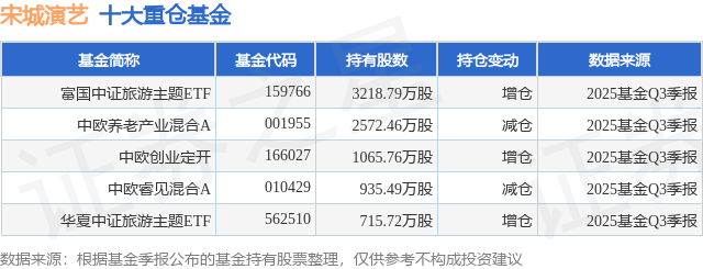 重仓宋城演艺的公募基金请见下表: