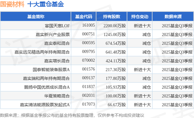 重仓国瓷材料的前十大公募基金请见下表: