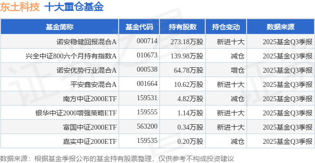 重仓东土科技的公募基金请见下表: