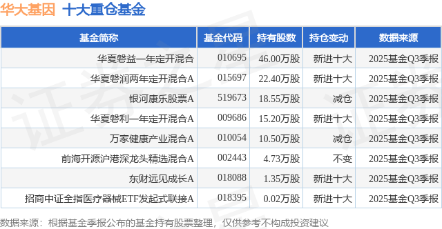 重仓华大基因的公募基金请见下表: