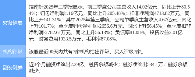 2025年10月25日,东吴证券研究员孙婷,武欣姝发布了对指南针的研报《2025年三季报点评:各项业务稳健发展》,该研报对指南针给出“买入”评级。研报中预计2025-2027年公司归母净利润分别为2.83/3.78/4.98亿元,对应PE分别为336/252/191倍,维持公司“买入”评级,期待麦高证券的发展,看好公司长期成长性。证券之星数据中心根据近三年发布的研报数据计算,该研报作者对此股的盈利预测准确度为67.33%。
