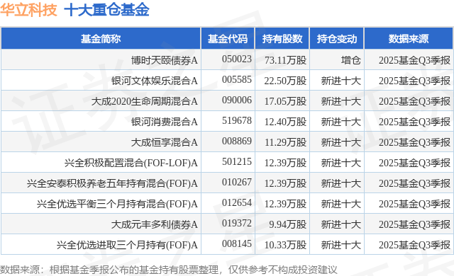 重仓华立科技的前十大公募基金请见下表:
