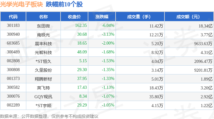 从资金流向上来看,当日光学光电子板块主力资金净流出14.89亿元,游资资金净流入2.92亿元,散户资金净流入11.97亿元。光学光电子板块个股资金流向见下表: