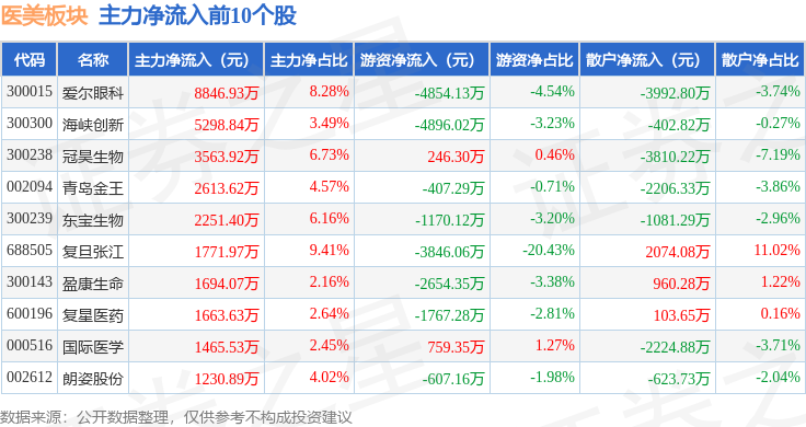 从资金流向上来看,当日医美板块主力资金净流出14.03亿元,游资资金净流入3.47亿元,散户资金净流入10.56亿元。医美板块个股资金流向见下表: