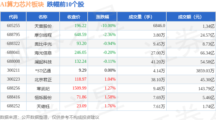 证券之星消息,1月12日AI算力芯片板块较上一交易日上涨1.83%,龙芯中科领涨。当日上证指数报收于4165.29,上涨1.09%。深证成指报收于14366.91,上涨1.75%。AI算力芯片板块个股涨跌见下表: